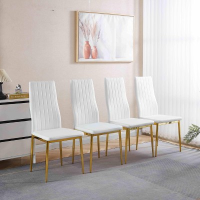 Sapphtopaz Modern Dining Chairs Set of 2 Upholstered Chair with Metal Legs Kitchen Chair with Shell-Shaped Backrest Chairs for Kitchen, Bedroom, White