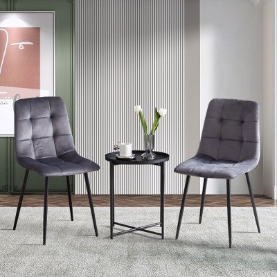 Sapphtopaz Modern Dining Chairs Set of 2 Velvet Upholstered Side Chair with Metal Leg and Waffle Tufted Kitchen Highback Chair for Dining Room, Gray