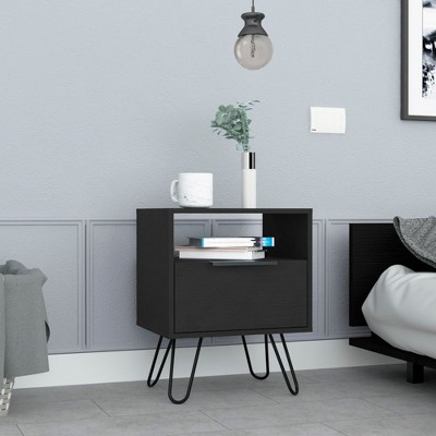 Product Name: Sapphtopaz Modern Night Stand with Drawers Wood Side Table with Top Panel and Open Compartment LED Bedside Table, Nightstand for Bedroom, Black