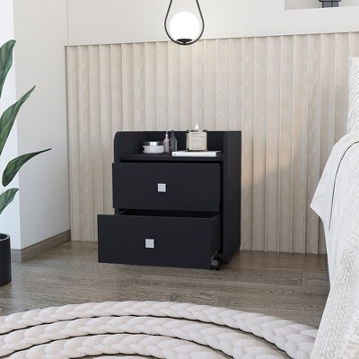 Sapphtopaz Modern Nightstand with 2 Drawers Rectangle Bedside Table with LED and USB Ports Wood Night Stand for Bedroom, Living Room, Black