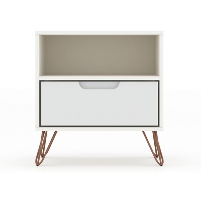 Sapphtopaz Modern Nightstand with 2 Vertical Textured Drawers Bedside Table with Splayed Gold Metal Legs & Handles Night Stand for Bedroom, White
