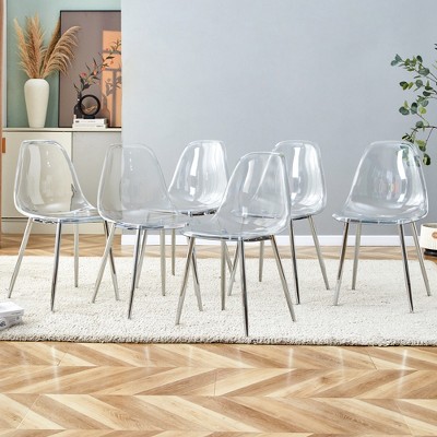 Sapphtopaz Modern Transparent Dining Chairs Set of 6 Armless Crystal Chair with Metal Legs Kitchen and Dining Backrest Chairs for Dining Room, Silver