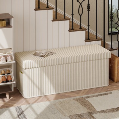 Sapphtopaz 35" Chenille Ottoman 3-Tier Soft Shoe Bench Low Ottoman with Upholstered Foot Stool Footrest for Living Room, Bedroom, Entryway, Beige