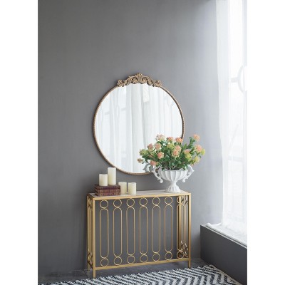 Sapphtopaz Oval Bathroom Vanity Mirror, 36"x38.5" Wall Mirror with Metal Frame and Reinforced Hook, Wall Decor for Bathroom, Living Room, Gold