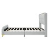 Product Name: Sapphtopaz Queen Leather Bed Frame PU Upholstered Platform Bed with Wingback Headboard, Solid Wooden Slats Support, No Box Spring Needed, Gray