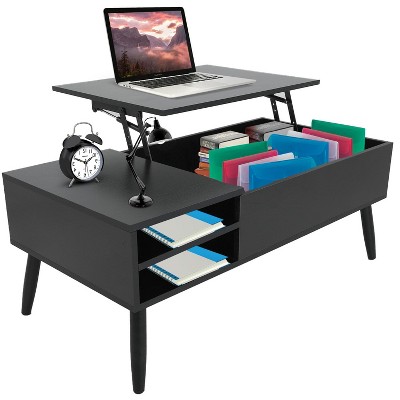 Sapphtopaz Round Lift-Top Coffee Table with Handcrafted Relief Wooden Tea Table with Hidden Storage Versatile Center Table for Living Room, Black