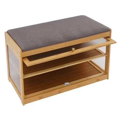 Sapphtopaz Storage Bench Looped Yarn Accent Stools with Irregular Geometric Armrests and Rubber Wooden Legs Ottoman with Storage for Bedroom, Entryway