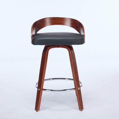 Sapphtopaz Swivel Bar Stools Set of 2, Wood Counter Height Bar Stools with Low Backrest, 25" Height Bar Chair for Kitchen Island, Dining Room, Beige