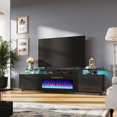 Product Name: Sapphtopaz TV Stand for TVs Up to 75" with Non-Heating Fireplace LED Entertainment Center with Storage Cabinets, TV Stands for Living Room, Black