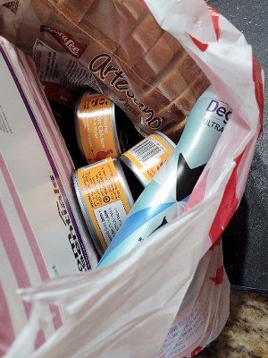 My bread was put in a bag with king sheets,v4 cans of chicken deodorant & pickles