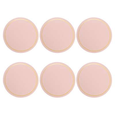 Product Name: Sara Miller Etched Leaves Coasters - Set of 6 Pink Cork Backed Drink Mats with Gold Foil Detail - Heat Resistant Wipe Clean Table Protectors
