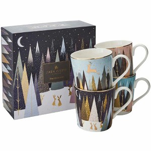 Portmeirion Sara Miller Frosted Pines Christmas Mug (Set of 4) - Fine China 12 Oz Holiday Mugs with Gold Detailing for Hot Cocoa, Coffee, Tea