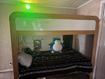 [This review was collected as part of a promotion.] Built to last, this bunk bed combines solid pine wood with warp-resistant engineered wood for lasting durability and style. It's modern design adds a sleek, contemporary touch to suit every kid's unique personality. With a sturdy slat support system, there's no need for a box spring, and the built-in ladder with a curved handle ensures safe, easy access. Bonus: it's more than a bed. A double-sided whiteboard, marker track, and craft-paper easel make it a creative hub for imaginative play-perfect for any child's room.