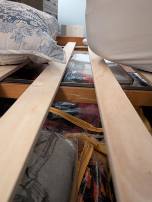 We’ve had this for a little over a month and the bottom of the bed is beginning to fall out from under us. The wood beam that runs the length of the bed twisted so the legs weren’t full under it while cleaning without our knowledge and then snapped in the middle of the night