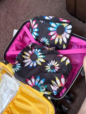 [This review was collected as part of a promotion.] This is my MOST favorite carry on suitcase I have ever owned!! Love Sarah Jessica Parker's line of products. The high heels design in the shape of flowers is just so freaking adorable! This suitcase is very well made. Already traveled with it and no dents, dings or scratches! I love the inside wet pouch pocket for bathing suits or hair/body products. Such a cute idea to include two smaller cosmetic bags with the same high heel design. I love all of the colors in this suitcase too! Very vibrant and eye-catching! Could not recommend this suitcase enough!! It also has a smaller zip pouch inside, a drawstring bag, a shoe area that zips up away from the clothing area. You can expand the suitcase if needed by unzipping the extra fabric. Also one of my favorite parts are the 360 wheels, so you don't have to worry about lifting the suitcase to maneuver differently. It moves with you whatever way you need it to!