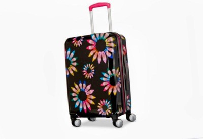 Travel in style with the Large Expandable Spinner from the Sarah Jessica Parker x American Tourister collaboration. Inspired by Sarah Jessica Parker’s vibrant style, its dynamic silhouette and eye-catching pattern, coupled with an integrated TSA-approved lock, interior organization and packing cubes; make it the ultimate travel companion. Travel smart with the push button locking trolley handle, 360 Dual Spinner wheels. Fully Featured interior also includes a WetPak pocket, Shoe Pockets and a small zippered modesty pocket Includes 2 Packing Cubes and integrated TSA-approved lock.