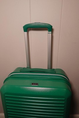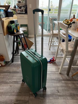 [This review was collected as part of a promotion.] This suitcase is so cute and extremely functional! I was so surprised that it came with built in zipped storage on one side that has a “wet pack pocket” and shoe pockets, a zippered pouch in the center, 2 packing cubes & a shoe/laundry bag! The exterior color is a true emerald green. I thought it would be too teal for my liking but the green is really pretty. The inside is a bit “louder” than I normally would have chosen but I think the organization makes up for it! And once it’s full of clothes you won’t notice it as much anyway. I can’t speak to durability just yet as we haven’t gone on a trip but I’m excited to use this as my next carry on! The overall dimensions are 22x14x9–perfect carry on size!