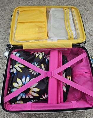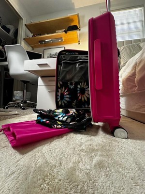 [This review was collected as part of a promotion.] Was so excited to get this bright pink SJP suitcase. I love that there was an unexpected surprise of packing cubes/ dirty laundry bags inside. Love that it is expandable and cute. This suitcase is great for weekend trips and as a carry on. I gave it 4 stars, because I don’t see it lasting very long with baggage claim and I’m used to magnetic wheels. But for the price point and for a fun non business trip this is great.