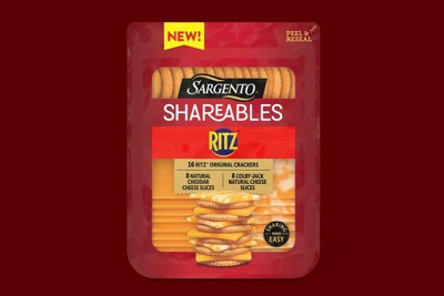Introducing Sargento® Shareables with 16 Ritz® Original Crackers, 8 Cheddar Natural Cheese Slices, & 8 Colby-Jack Cheese Natural Slices, the ideal snack pack for sharing! This delicious duo combines 16 crunchy Ritz® Crackers with two varieties of Sargento® natural cheeses — 8 slices of mild, creamy cheddar and 8 slices of sharp, tangy Colby-Jack. The resealable tray helps ensure freshness, making it easy to enjoy anytime. Whether you're looking for a quick after-school bite or a simple appetizer for a gathering, this combo offers the perfect balance for easy sharing. For 3 generations, the Sargento family has proudly delivered high-quality, real, natural cheese you can trust. RITZ is a trademark of Mondelez International group, used under license.