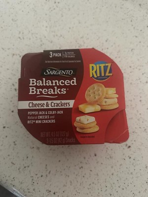 - This 6 oz (4 servings) pack contains 16 Ritz® Original Crackers, 8 Pepper Jack natural cheese slices, and 8 Monterey Jack natural cheese slices