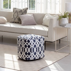 Bring casual, functional seating to either your indoor or outdoor space with this comfortable, versatile pouf. Upholstered in beautifully crafted and durable jacquard-woven polyester that avoid mildew and moisture retention, this pouf transforms a nice space into something better by providing a pop of style and sprinkle of texture. In addition to the handmade high quality, these pieces are filled in the U.S.A with premium, expanded polypropylene beads that provide tremendous durability and a consistent, and soft yet firm seat, perfect for an ottoman or extra seating at any time.