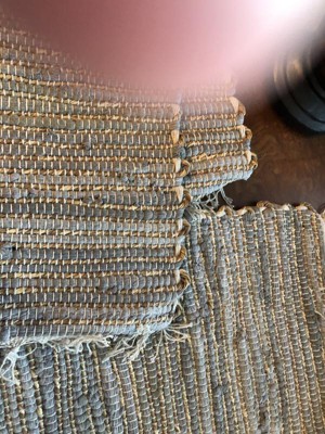 [This review was collected as part of a promotion.] I received these placemats in the mail and I was a little bit surprised on how they looked. First they are very stiff and the corners are uneven see attached pictures. Also the fringe is quite a bit unruly it does not seem to want to smooth out or settle down I’m going to try to iron it to see if that helps out. I think if you were going for a rustic look you may like these a lot as they are thick and have a rustic type of weave in them the color is nice it’s kind of a grayish blue so it’s quite neutral. Overall they are a bit rustic for me and the corners are not even which makes them not quite go with my decor. They may be OK for a cabin or something a little more rustic but if you were looking for something rustic for a cabin it might be OK