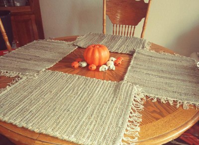 [This review was collected as part of a promotion.] Who knew large and thick would be attractive? Just kidding! But seriously, these placemats are huge! They currently overlap each other at the top corners. I have a small dinner table for four because I don't currently have the extended leaf attached. Regardless, I love that I can have my plate, silverware, cup and napkin all on the placemat at the same time, unlike some generic small ones that I have picked up at the local discount store. I will be expanding my table just before Halloween arrives in order to cut our jack-o'-lanterns, but for now, my table is around 70-ish inches in diameter. These placemats are thick! I read in the instructions that they are only to be spot cleaned, so do NOT throw these in your washing machine! The materials used are cotton and jute. It's a very pretty and neutral color which compliments my southwestern decor scattered around my home while giving my dinner table an updated look. I think these would make a lovely housewarming gift or for a wedding registry. I will be bragging to my friends about these placemats for years to come!
