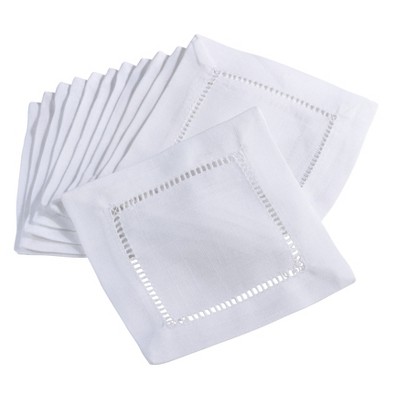 Saro Lifestyle Classic Hemstitch with Embroidered Border Cocktail Napkin Set of 12, White, 6"x6"