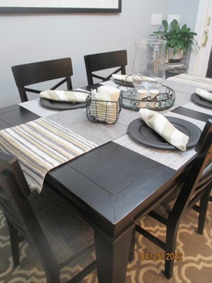 [This review was collected as part of a promotion.] I just love my new Saro Lifestyle - Cotton Napkins With Striped Design (Set of 4). My kitchen table is a dark brown and these taupe napkins go perfect. Adds a touch of elegance to any table. They are large at 20" X 20 " and are easy to care for. I just put them in the washer and dryer after use and they come out just like new. Makes for a beautiful table arrangement.