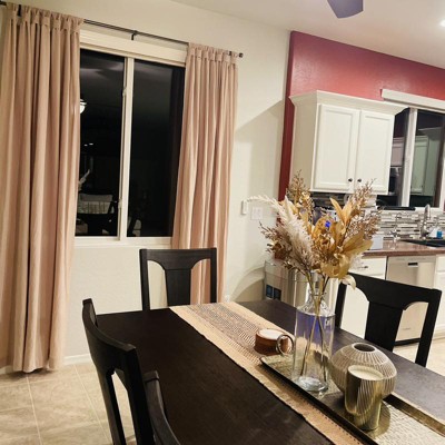 [This review was collected as part of a promotion.] I love this table runner. We redid our casual dining room with the beige and white colors. It has a farmhouse feel, and this table runner looks great on our dark wood dining room table! The material is thick (but not too thick) and well made.