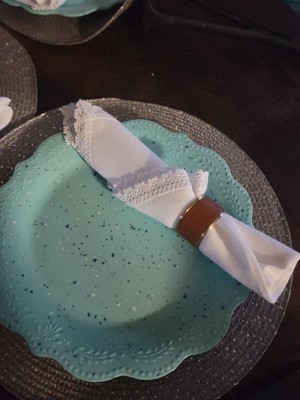 [This review was collected as part of a promotion.] These elegant white with a beautiful lace a beautiful napkins can go with any decor. The beautiful eyelet lack pattern stands out for all to see. Where it 2 people or its 1000 people everyone is going to want one one