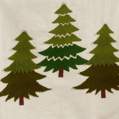 Combine the festive feeling of the holiday with charming style and achieve a stylish tabletop with this delightful table runner. The perfect foundation for your holiday table decor and celebrating the season! The design features three prominent embroidered and applique trees against a solid ivory background and contrasting piping. Complete the look with coordinating dinnerware and chargers for a polished look.