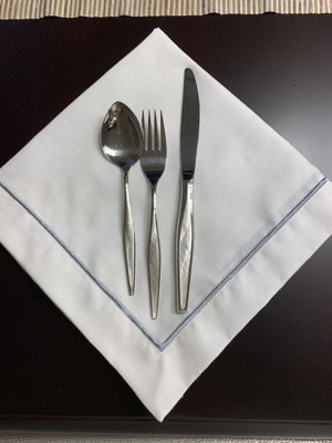 [This review was collected as part of a promotion.] I'm really liking these napkins for special occasions. Nice and clean look. Simple look but I like that. The embroidery is clean and nice looking as well. Fairly soft for a napkin. White is the challenge but it gives me more decor options that way. And the colored trim is a nice color as well. Will go nicely with my red napkin holders for Christmas actually. Nice heavy quality.