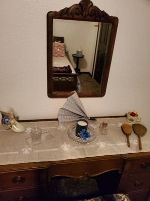 [This review was collected as part of a promotion.] This looks fabulous in our spare bedroom. We love antiques...so it absolutely fits in. I have table runners, dresser runners, doilies, etc. on all of my wood. Not only does this look beautiful, it protects the top of the dresser. This runner is made well, substantial in size and can be used anywhere. My husband and I were quite happy with this and we needed one for the room we just remodeled, so perfect timing to get it. When most people like the modern touches, we prefer the traditional and antique.