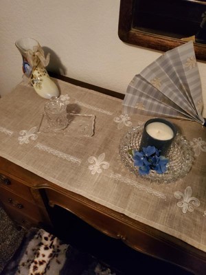 [This review was collected as part of a promotion.] My Embroidered Runner With Fleur-de-Lis Design is absolutely stunning! The fabric is wonderful and the pattern is beautiful. This embroidered runner looks great on my table and received so many compliments on it!