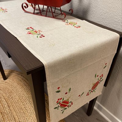 Saro Lifestyle Embroidered Ornament Holly Design Holiday Linen Blend Table Runner