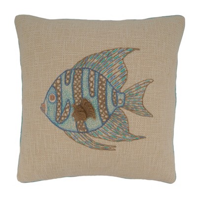 Saro Lifestyle Embroidered Sea Horse Decorative Pillow Cover, Aqua, 18"