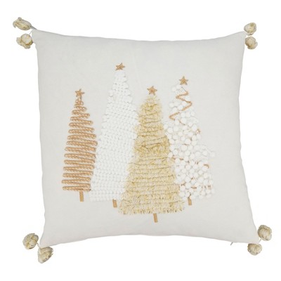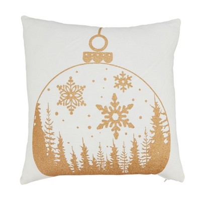 Saro Lifestyle Festive Frost Snowflake Throw Pillow Cover with Tassels, 18", Gold