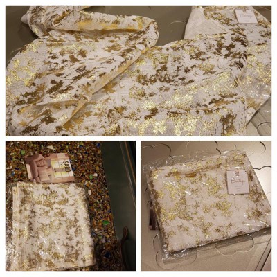 [This review was collected as part of a promotion.] I love the Long Table Runner With Foil Print Design. The gold/metallic color is beautiful and this will look amazing on my dinner table for the holidays. It will compliment my holiday dinnerware, and ad the extra glitz I’ve been looking for. The length of the runner is spot on and the quality is great. I would definitely recommend this item!