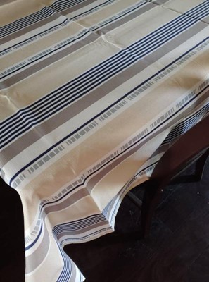 [This review was collected as part of a promotion.] Thank you for the striped design tablecloth. This product is great, I really like it, it has a nice design in it goes with dining room really nice with the color I have in it. Fits the table great. I will recommend this product to family and friends.