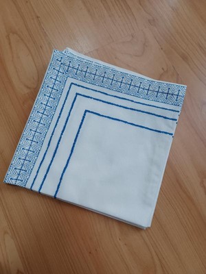 [This review was collected as part of a promotion.] I needed napkins to match our new dinnerware set. I loved the simplicity of the design but also the little blue details just make them look so high end. The fabric is a nice weight and quality and seems like it should wash well.