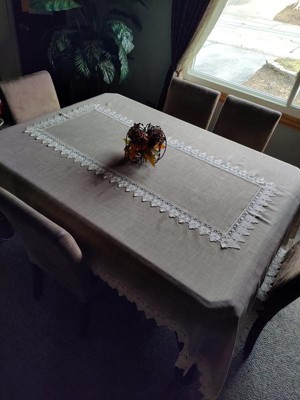 Saro Lifestyle Lace Trimmed Tablecloth, Taupe, 65" x 104"