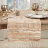 [This review was collected as part of a promotion.] I love the color and texture of this table runner! It is made very well and hasn't frayed or coming loose anywhere. It adds a nice neutral tone and keeps my table safe, as well! I would buy this again.