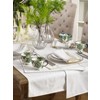 Add a touch of simple sophistication to your dining table with this beautiful table runner. Made entirely of cotton, this runner features a shimmering gold border and pairs well with gold decorative accents and chic dinnerware.