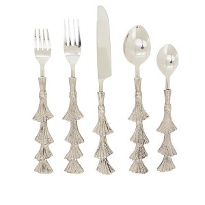 - Set includes: 1 dinner fork, 1 salad fork, 1 dinner knife, 1 soup spoon, and 1 teaspoon