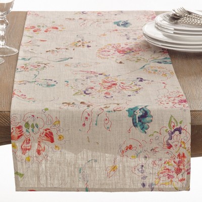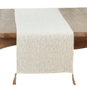 Saro Lifestyle Mixed-Linen Jacquard Table Runner, 16"x72", Beige