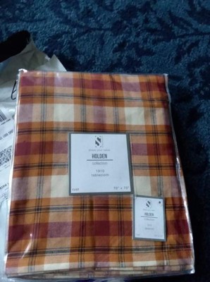 Saro Lifestyle Plaid Tablecloth, Rust, 70" x 70"