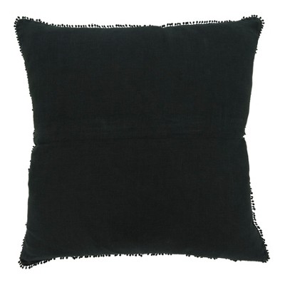 Saro Lifestyle Posh Faux Bunny Fur Pom Pom Poly Filled Throw Pillow, Black, 14"x14"