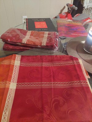 I originally spent a long time looking through different websites to find a high quality tablecloth for my table and fell in love with these napkins at first glance. The pattern is so intricate and detailed, and the picture doesn't do justice in how the light reflects so beautifully off the colors. I also bought the matching tablecloth and they are just as beautiful. Please do yourself the favor and spend the extra money on getting a quality cloth like this for your house.