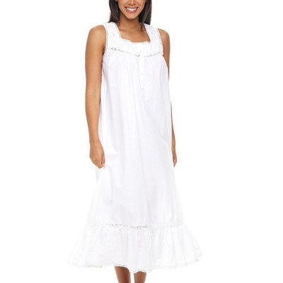 Prioritize comfort at bedtime with this smock nightgown. This white, full-length nightgown consists of 100-percent pure cotton for an ultra-soft feel and simple machine-washable care. Put it on easily thanks to the pullover fit, and look charming even as you sleep as this nightgown has an attractive button front.